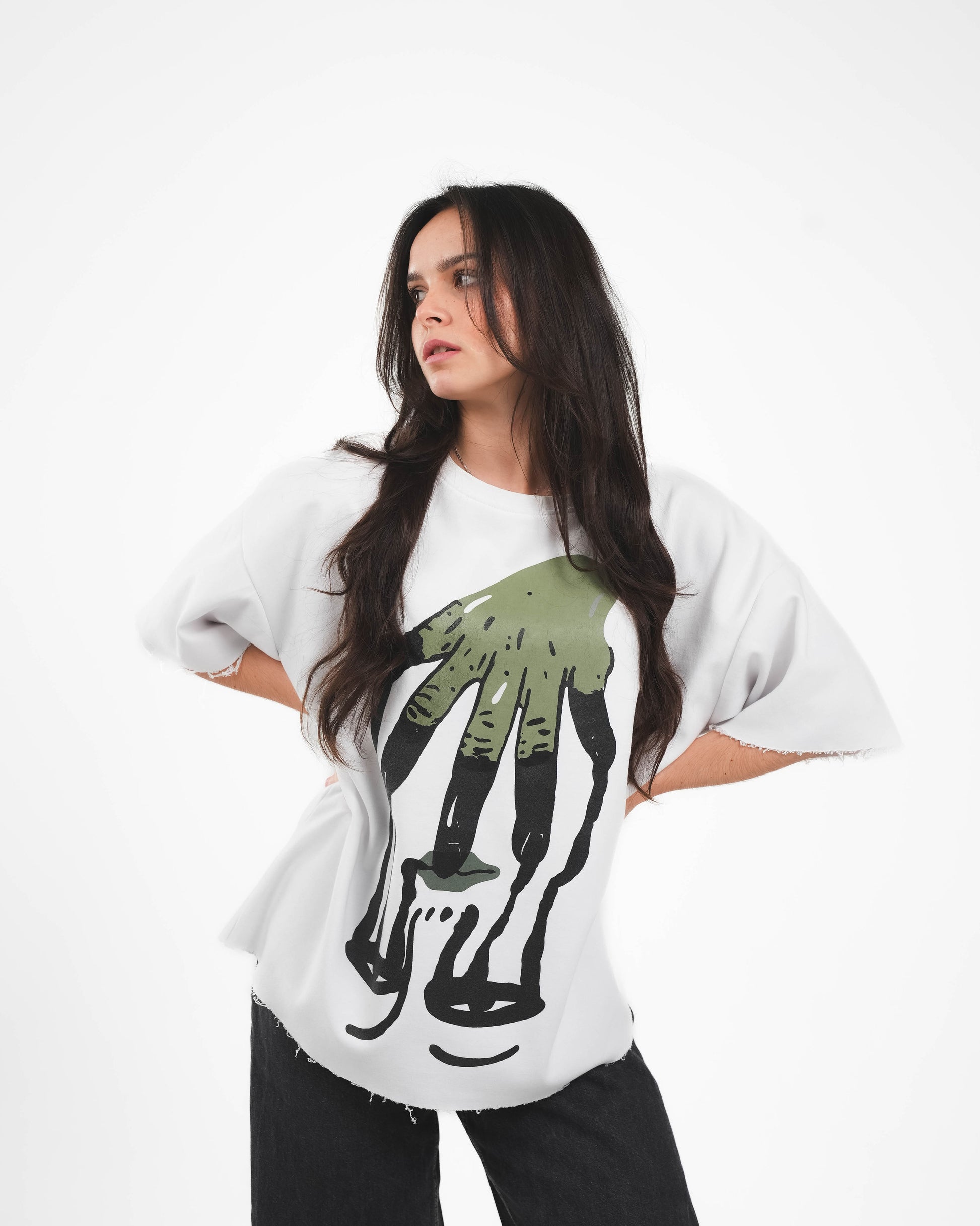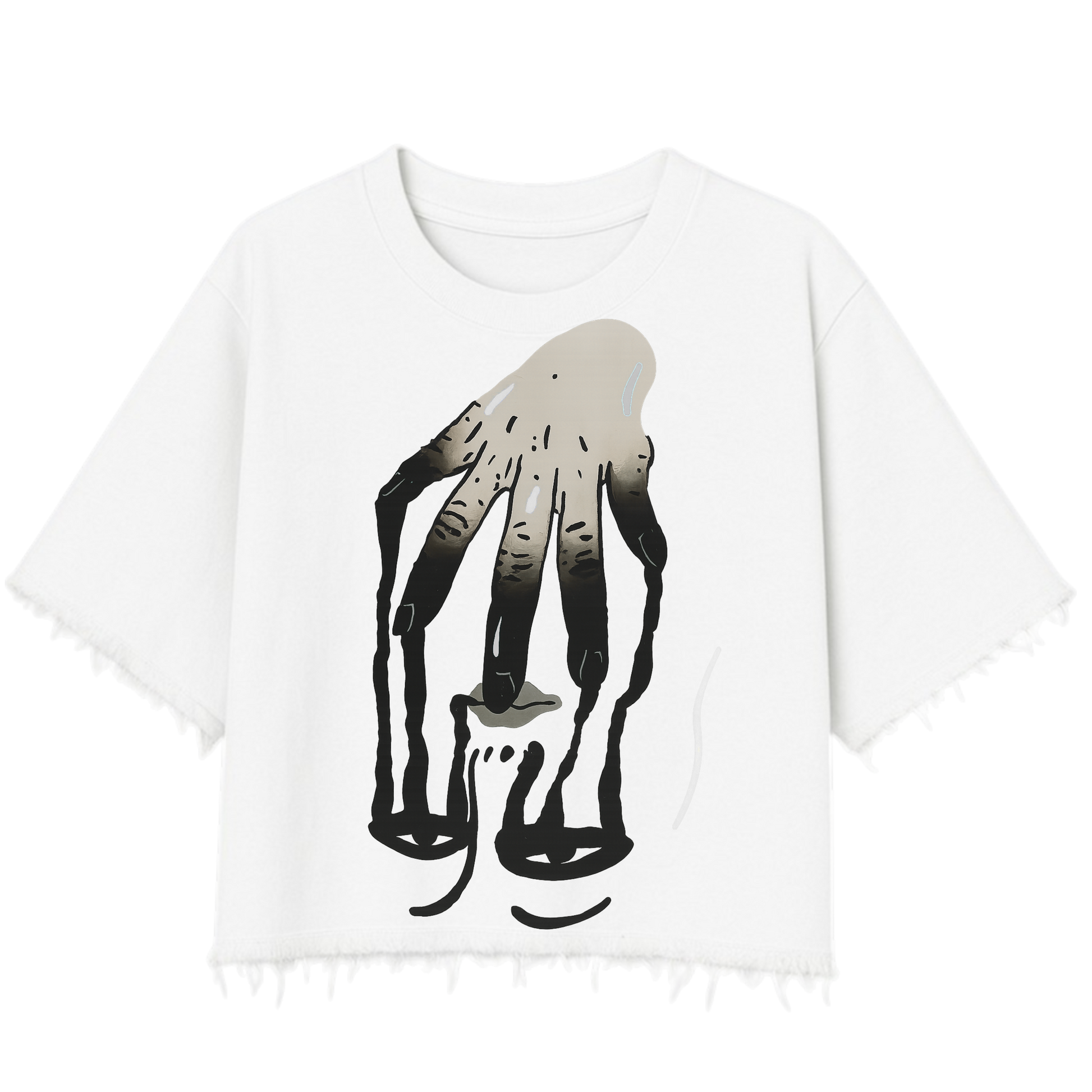 - Efekt postrzępienia na rękawach i zakończeniach koszulki
